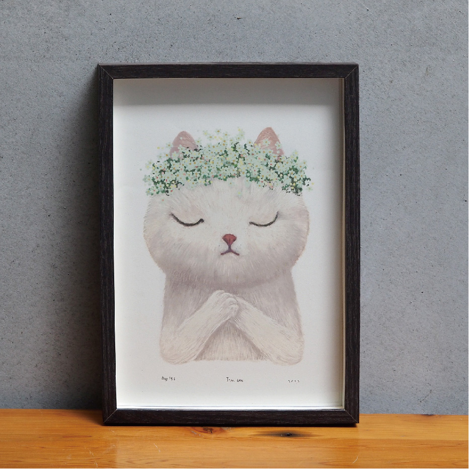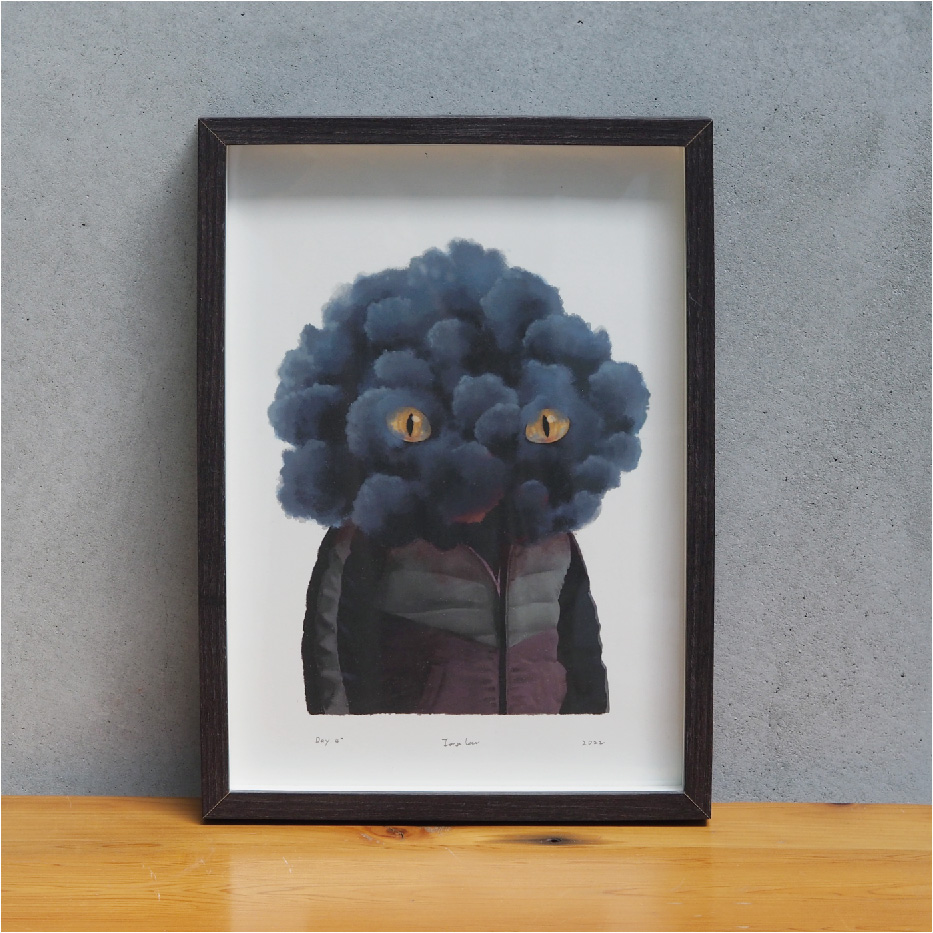 創作者李哲榮老師落款的印刷畫作,提供兩種尺寸與兩色畫框購買。